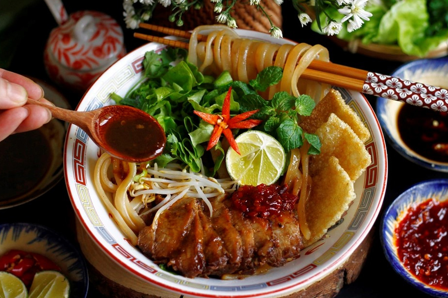 Mi quang noodles originated in Quang Nam province, with Da Nang serving excellent versions. The dish features yellow turmeric noodles with minimal broth, shrimp, pork, peanuts, and fresh herbs. The limited broth concentrates flavors while colorful ingredients create an appealing presentation. The dish is found throughout central Vietnam but attains particular excellence around Da Nang, reflecting its regional significance.