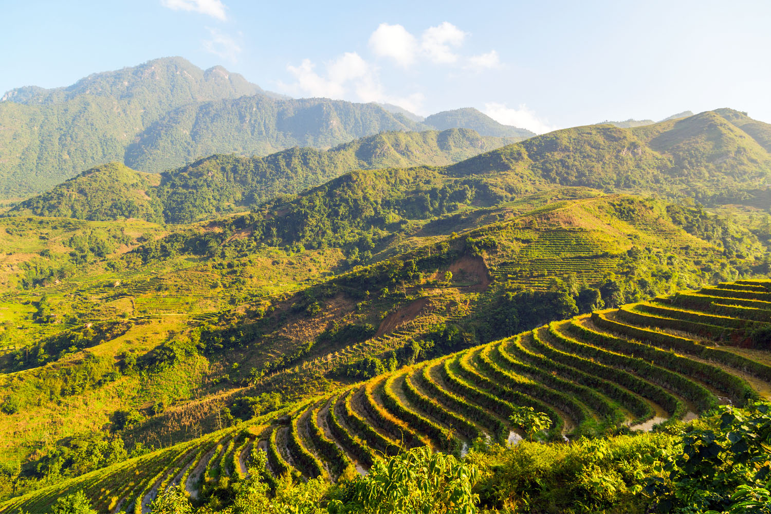 The green season typically begins after farmers transplant rice into the terraces. In Sapa, the growing cycle depends on both altitude and specific ethnic minority communities, but generally, the landscape becomes vibrantly green in the late summer period. During this time, the rice grows rapidly, filling each terrace with dense vegetation. The vivid green color looks particularly striking when early morning sunlight hits the slopes, turning the terraces into luminous bands of color visible from afar.