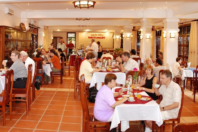 Is set in a suberb location with over 200 seats, opening from 6:00 to 22:00 serving A La Cart and Buffet with Vietnamese Food and or Western Food and or Local specialities such as White Roses, Cao Lau & Wonton.