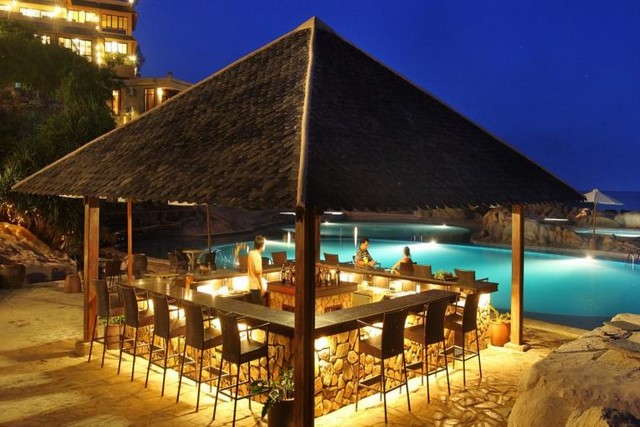 The Swimming Pools: of Rock Water Bay are located close to the seashore and supplied with seawater processed by a filtering system. One can play freely in the cool water under the relaxing massage falls. Next to the swimming pools is a bar where food and soft drinks are served, for your convenience.