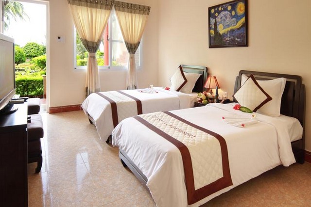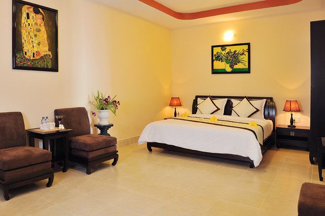The Swiss Village Resort Seaside & Spa (SVR) is elegantly surrounded by coconut palms next to the Ocean with private white sand beach. The SVR’s Architecture is a fine mixture of different ancient Asian Cultures (Vietnamese, Japanese and Chinese) with the curved roofs using traditional ceramic tiles and the circular columns. In addition, the interior comfort of the living is modern of International Standard.