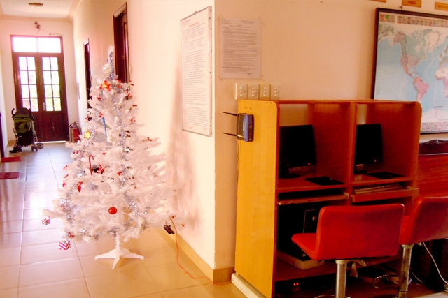 - Free use of English news paper & book shelf with various languages.