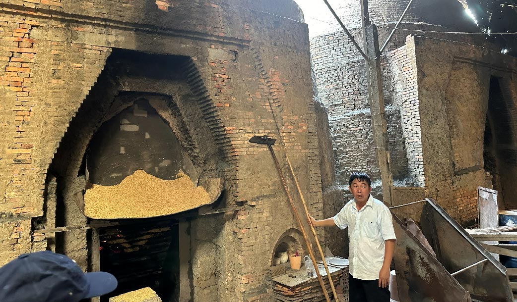The boat docks beside one of the working kilns and guests have the option to disembark and walk inside with the guide. The interior of an active beehive kiln is a different environment from the outside view — the scale of the brick stack, the heat near the firing mouth, the smell of wood smoke and fired clay, and the sight of workers loading and unloading in the near-darkness are all part of understanding how the place actually functions rather than how it looks from the canal. The stop is optional — guests who prefer to remain on the boat and continue photographing from the water can do so. About 30–45 minutes.