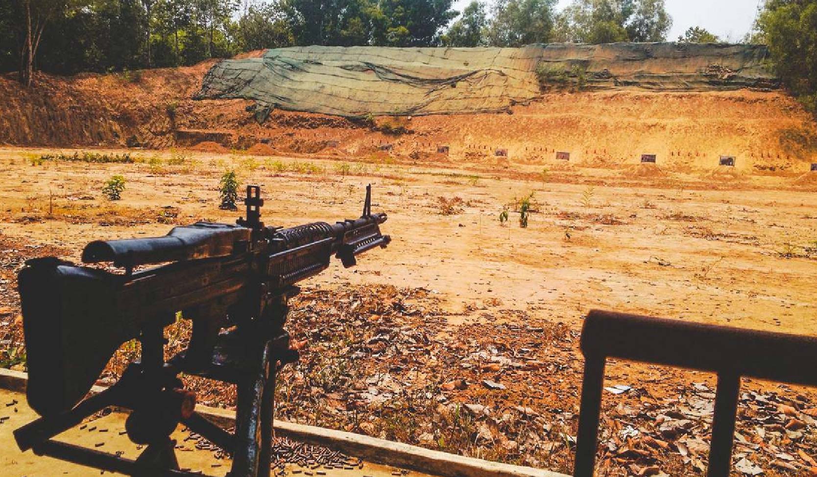 An operational shooting range at the site offers period-accurate weapons — AK-47, M-16, M-30, and others. Cost is approximately $1–2 USD per bullet with a minimum of 10 bullets, payable on site. Entirely optional. Guests who skip can wait at the site or the vehicle.
