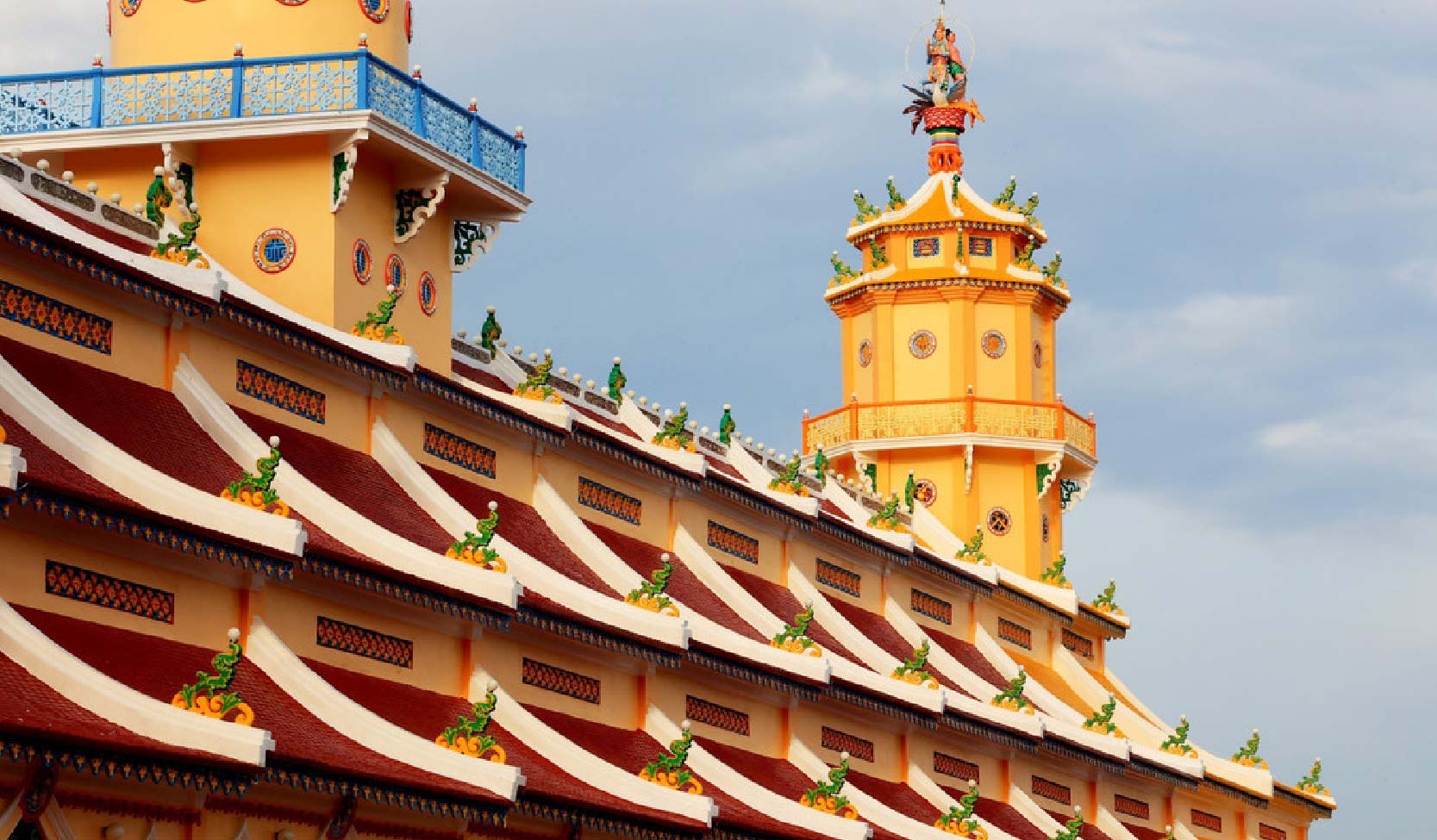 – Cao Dai Great Holy See — the most colourful temple in Vietnam: built in 1926, the central temple of Caođàism is a baroque-Buddhist-dragon extravaganza in pink, yellow, and blue. No photograph fully prepares a first-time visitor for the interior.