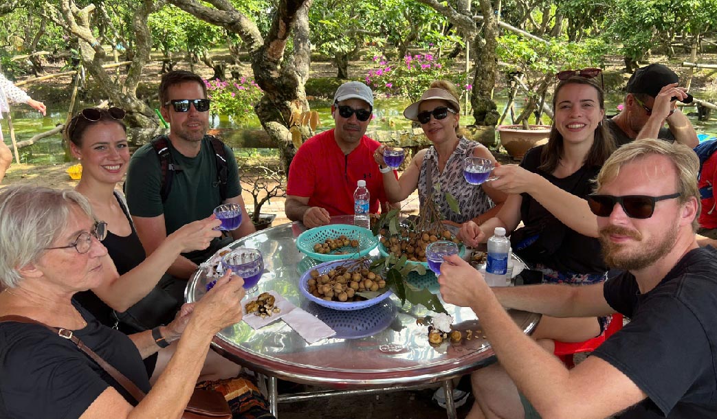 • Hands-on Vietnamese cooking class with a local family on Tan Phong Island — pick herbs from the garden, cook 2–3 dishes, eat lunch in a shaded riverside garden