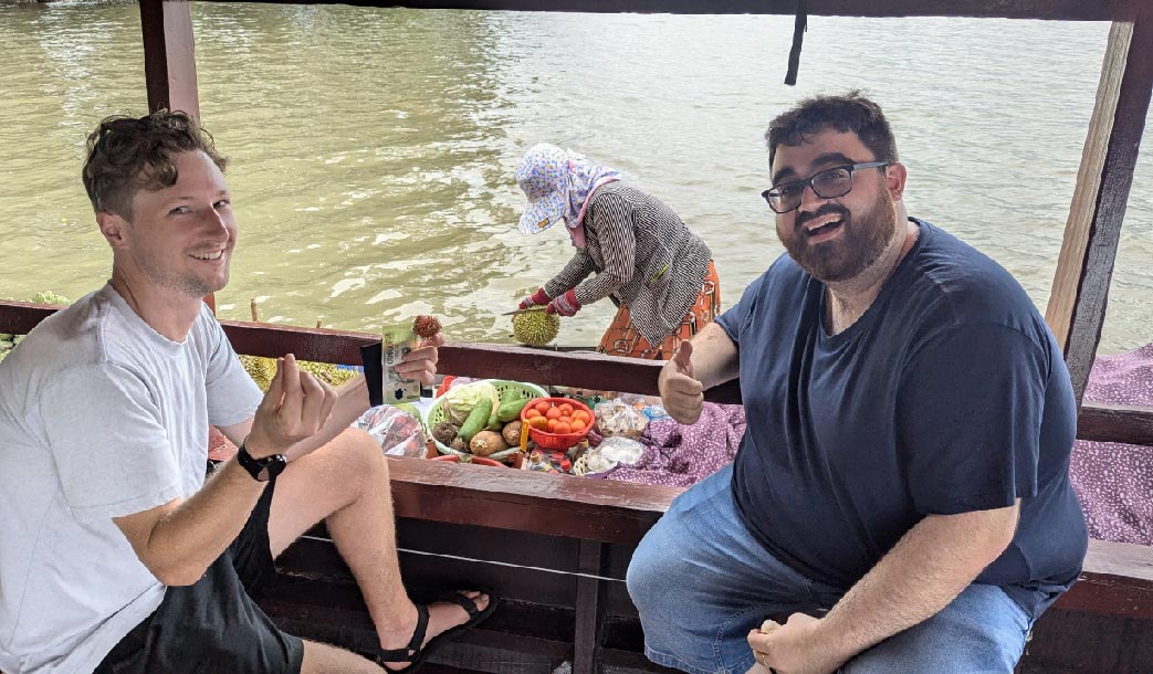 • Early morning boat trip to Cai Rang floating market — the largest wholesale floating market in the Mekong Delta, best seen at dawn