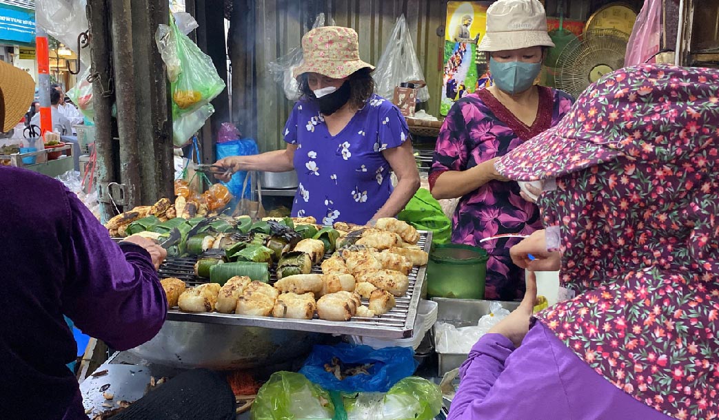 The last stop covers two things. First, chè: Vietnam’s sweet dessert soups come in dozens of variations, and your guide will help you navigate the options — chè bà ba (three-colour dessert with coconut milk), chè đậu xanh (mung bean), or whatever the stall is best known for that evening. It’s served cold in a glass, eaten with a spoon, and best consumed standing on the footpath.