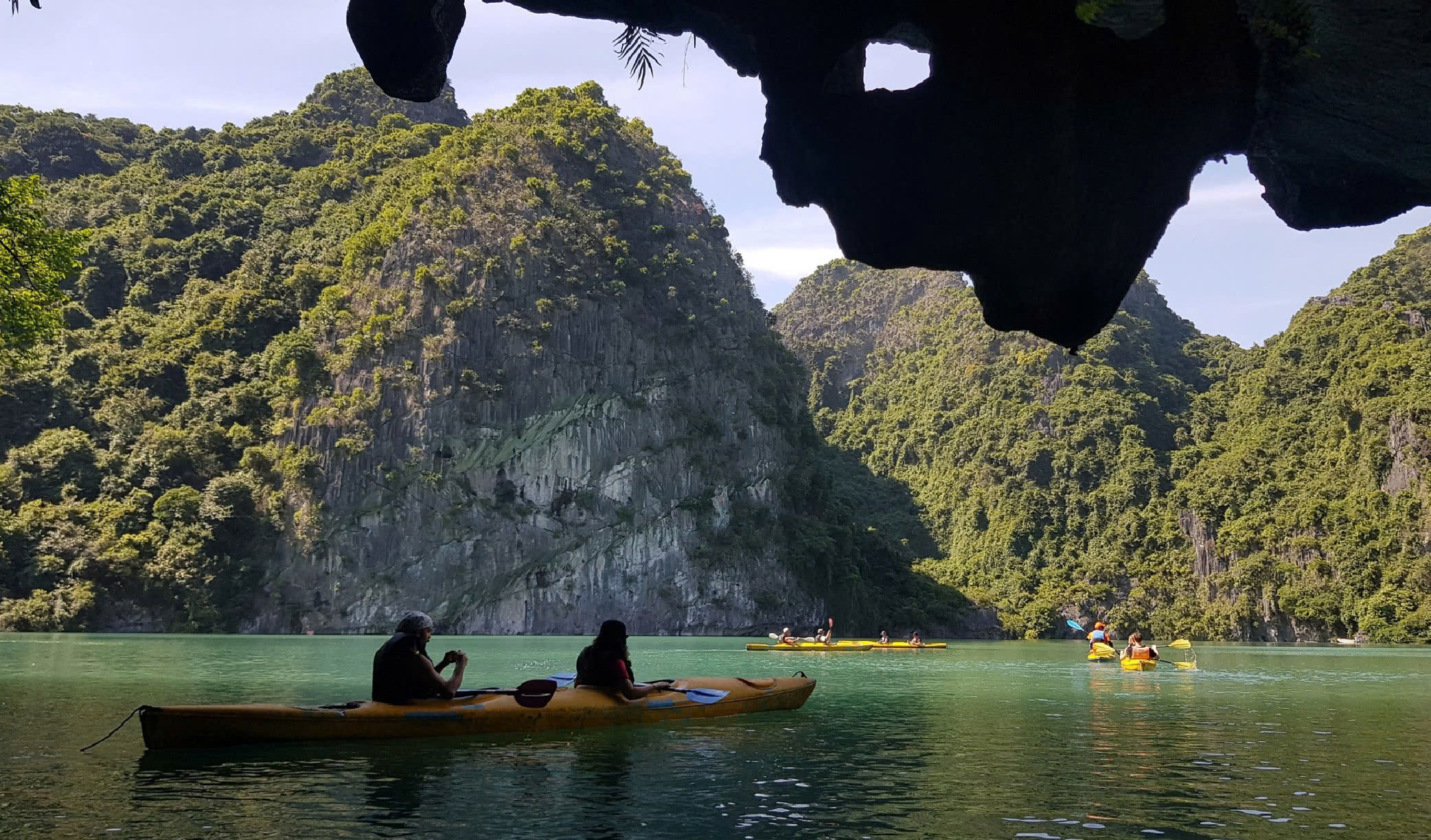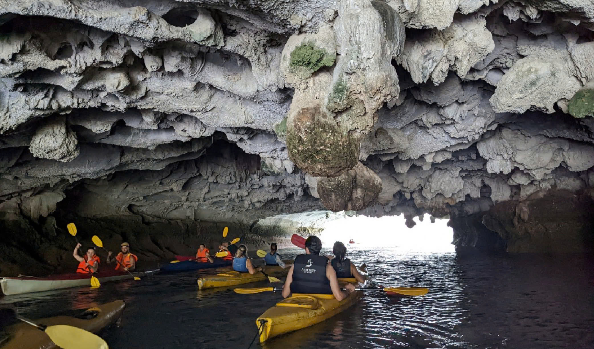 Board comfortable Halong Bay cruise vessel and begin exploring natural wonder that has captivated travelers for centuries. Cruise experience includes visits to spectacular caves adorned with stalactites and stalagmites, opportunities for kayaking through hidden lagoons and secluded beaches, and swimming in pristine waters.