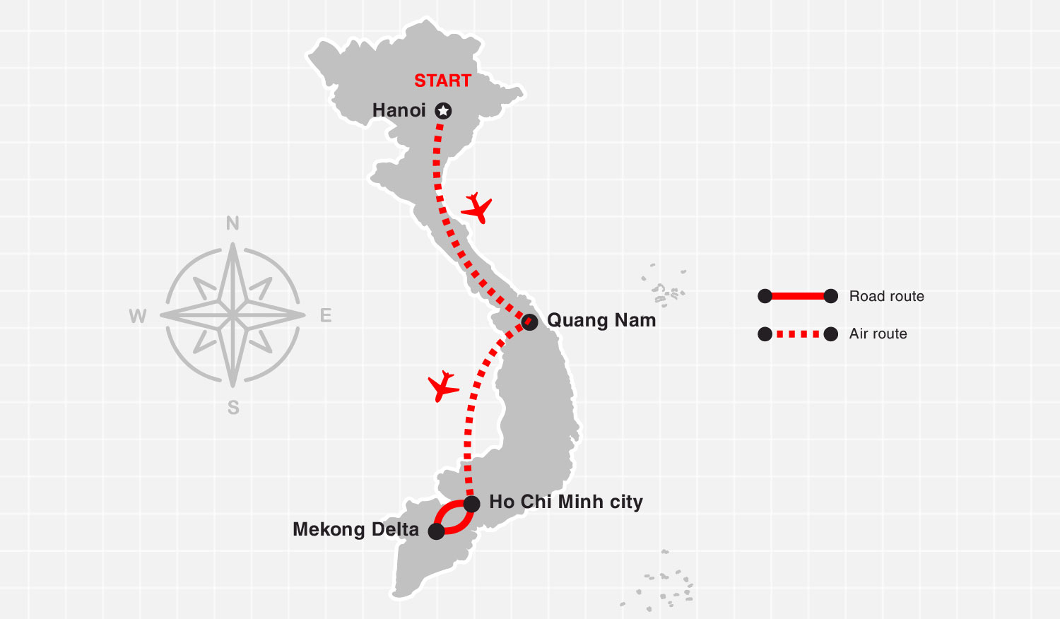 - Domestic flights (Hanoi to Da Nang, Hoi An to Ho Chi Minh City)